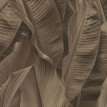 Braune Vliestapete mit Blättern.