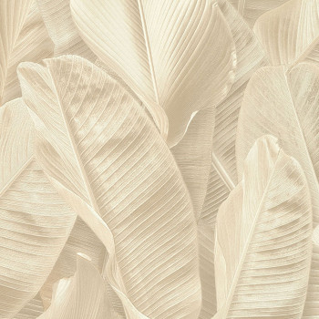 Grau-beige Vliestapete mit Blättern.