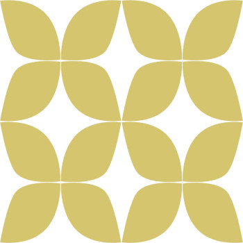 Weiße Vliestapete mit einem senfgelben geometrischen Muster.