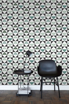 Vlies, geometrische Vliestapete - Muster in Schwarz und Grüntönen.