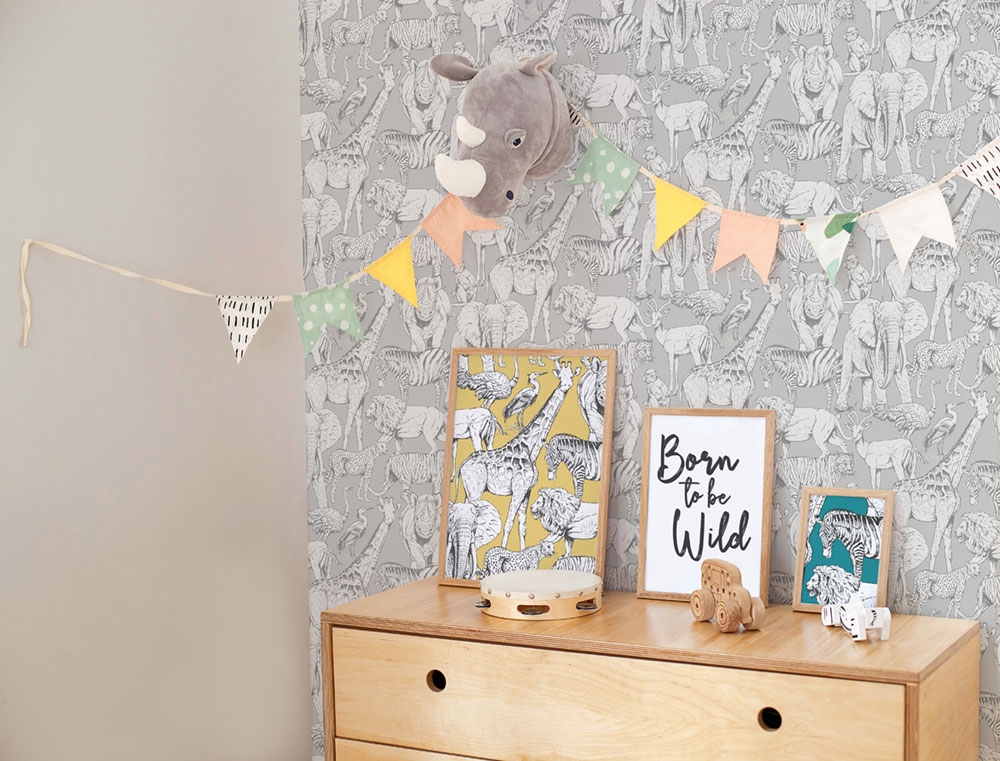 Kindertapete Dschungel, Vliestapete 108567, Jungle Animals Grey, Kids@Home 6, Graham & Brown