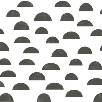 Weiße Vliestapete mit schwarzen unregelmäßigen Halbkreisen.
