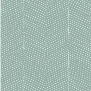 Grüne Vliestapete mit einem zarten weißen geometrischen Muster.