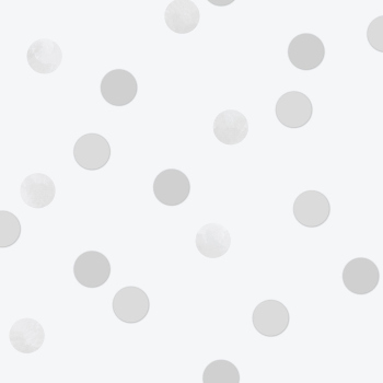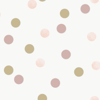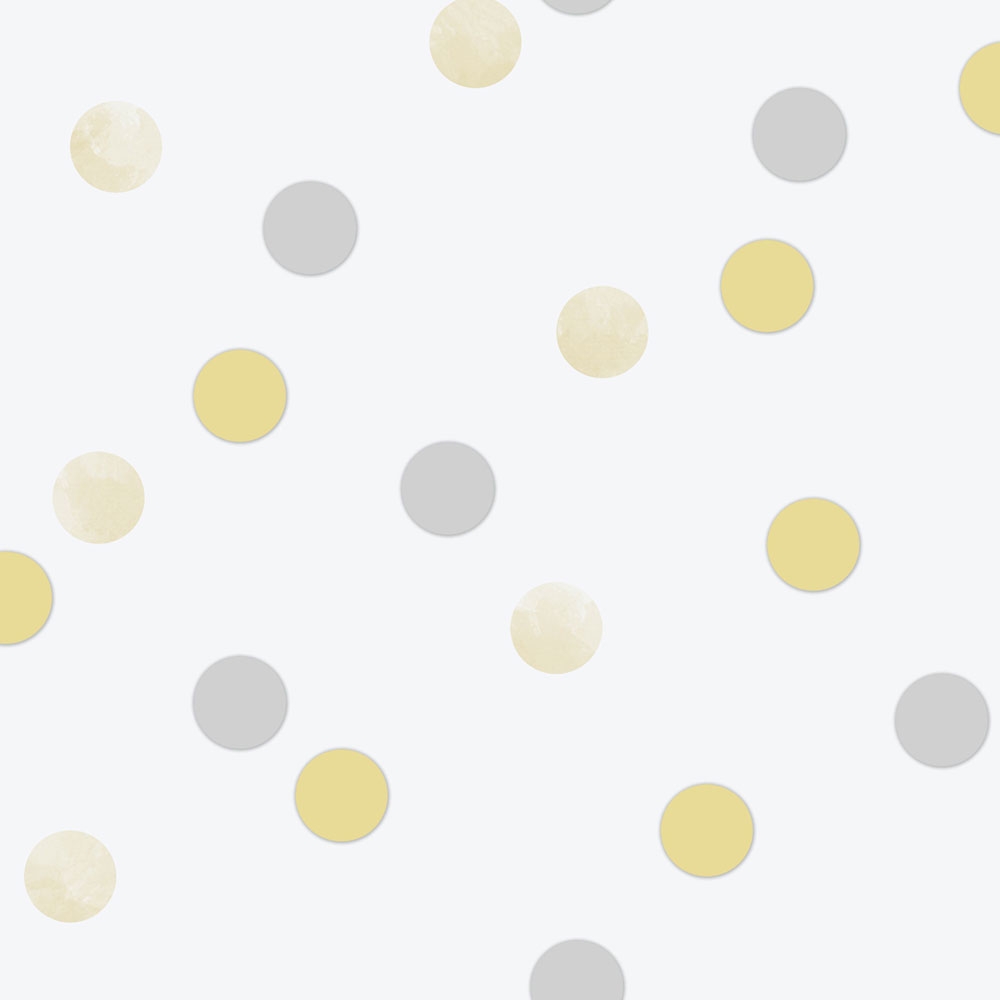 Weiße Tapete mit gelben und silbernen Tupfen.