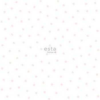 Weiße Vliestapete mit unregelmäßigen rosa Punkten.