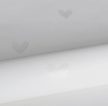 Weiße Vliestapete für die Wand mit feinen silbermetallischen Herzen.