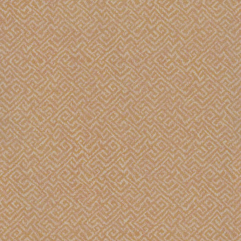 Vliestapete mit geometrischem Muster in Senf-, Braun- und Beigetönen.