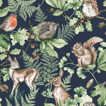 Kindertapete Waldtiere, Vliestapete 108568, Woodland Animals Navy, Kids@Home 6, Graham & Brown