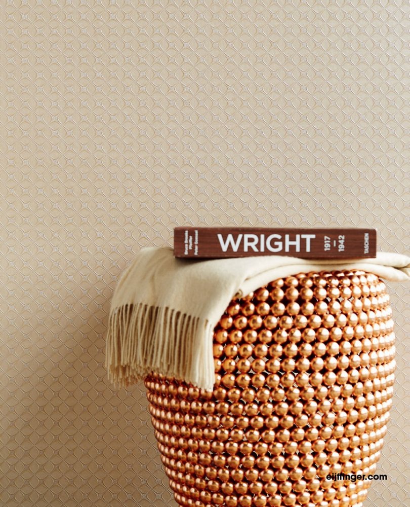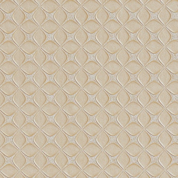 Braun-beige Metallic-Vliestapete mit geometrischem Muster.