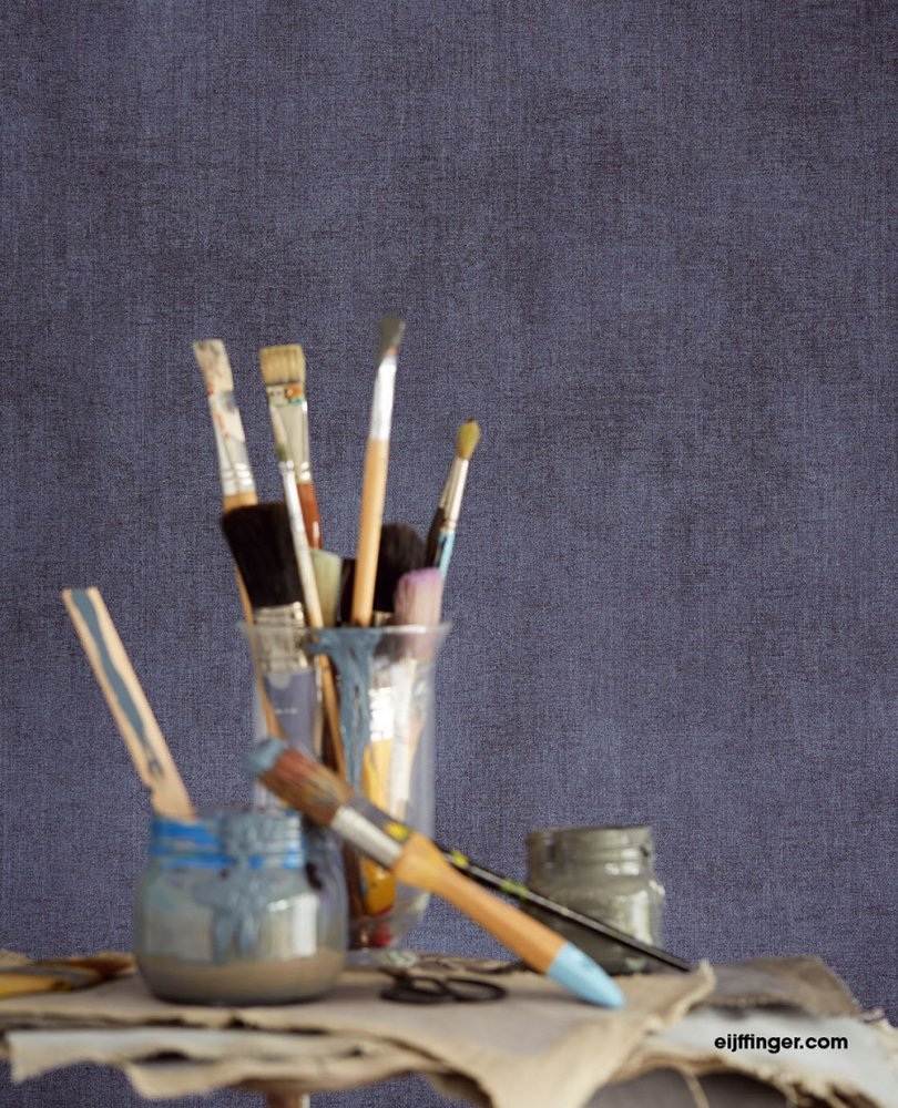 Dunkelblaue Vliestapete mit feiner Stoffstruktur.