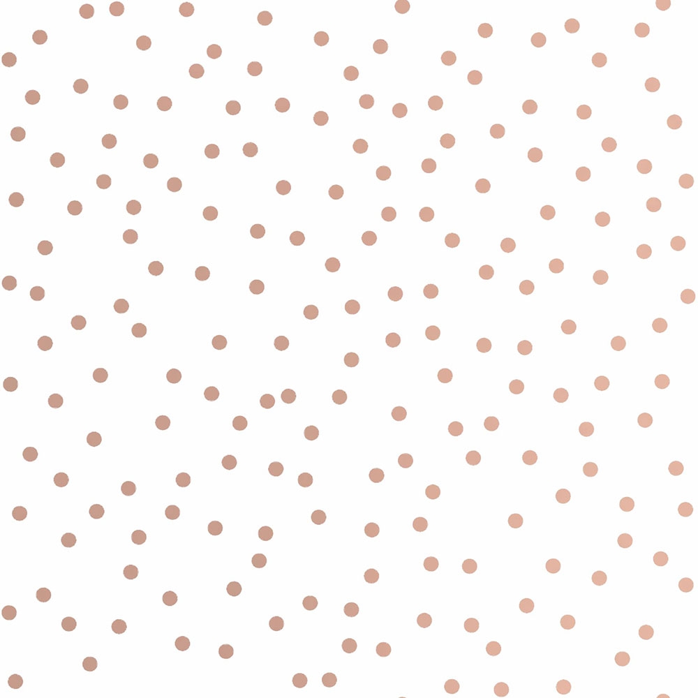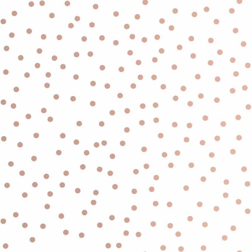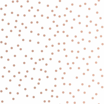 Weiße Tapete mit Tupfen in Roségold.