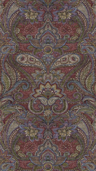 Ornamentale Fototapete in den Farben Rot, Lila, Blau, Grün.