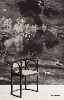 Schwarz-weiße Fototapete mit Motiven aus der Natur.