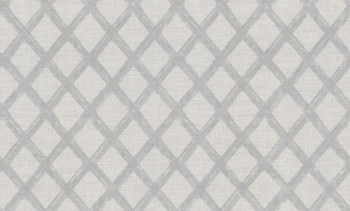 Geometrische Vliestapete mit Vinylbeschichtung, in Grau- und Grau-Silbertönen, mit Stoffstruktur.