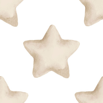 Vliestapete für die Wand, mit feiner Struktur, weißer Hintergrund, beigefarbene Sterne mit einem Durchmesser von 30 cm.