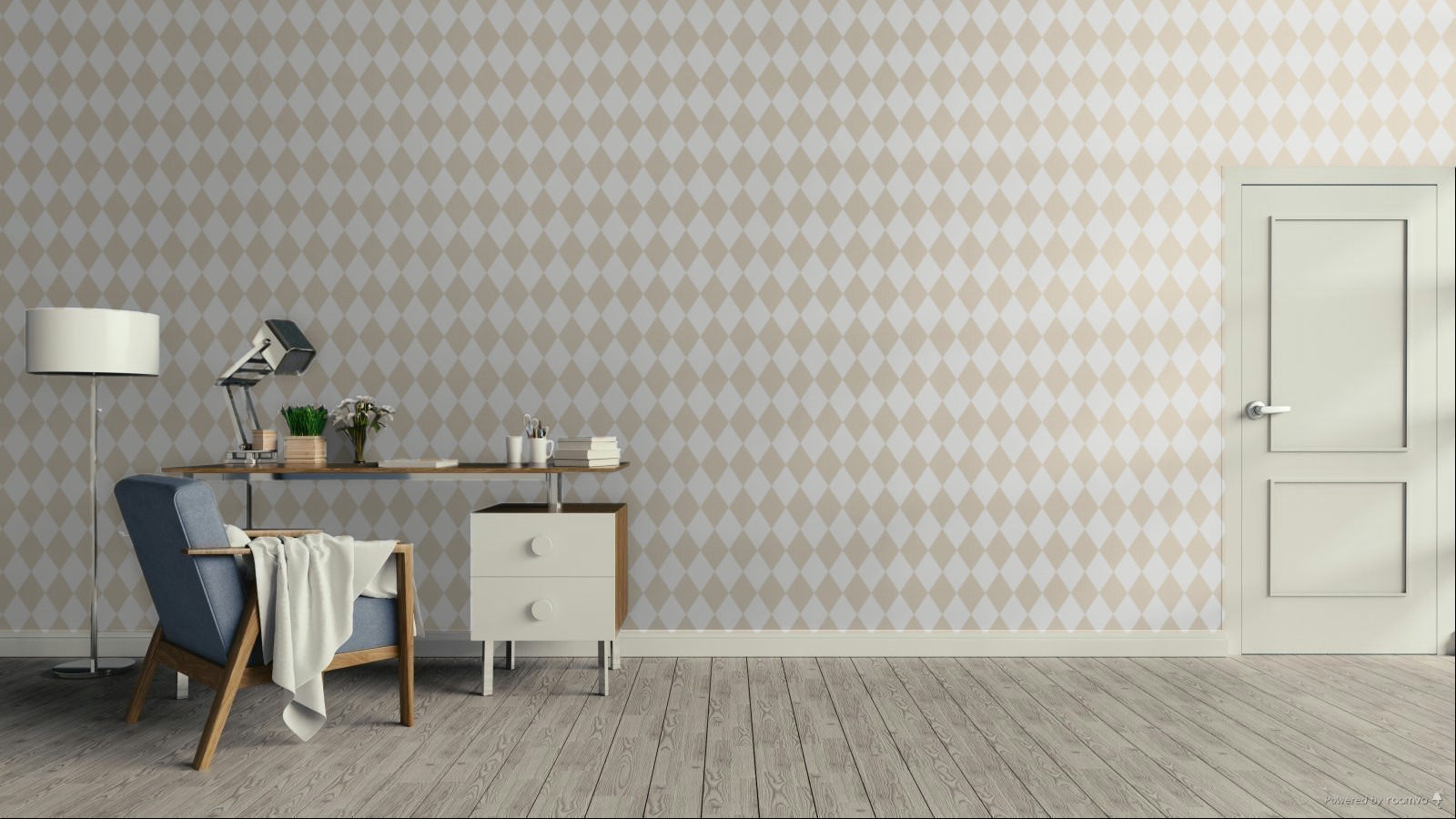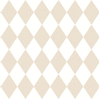 Vliestapete für die Wand, mit feiner Textilstruktur, beige-weiße Rauten.