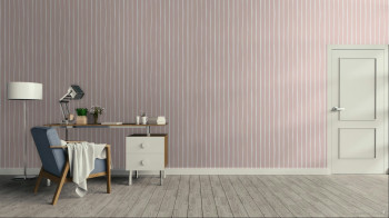 Vliestapete, glatt, weiß-rosa, Streifen.