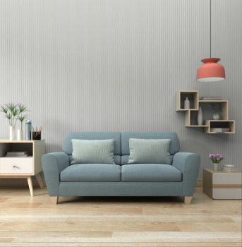 Vliestapete für die Wand, mit feiner Struktur, grau-weiß, Streifenbreite 6 mm.