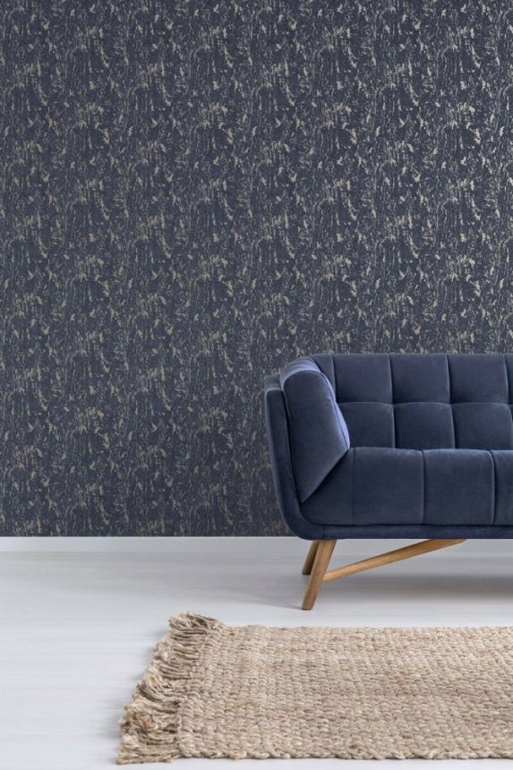 Vinyltapete. Stark plastische korkblaue Textur, durchscheinender glatter silberner Hintergrund.