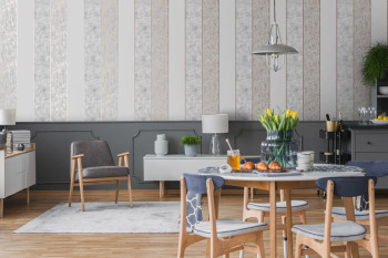• VITTORIO Tapetenkollektion -  Die Tapetenkollektion VITTORIO zeichnet sich durch hochwertige Tapeten voller Spiegelungen und der Verkörperung von Luxus aus. Markante Tapetenstrukturen gibt es in modischen geometrischen Mustern, markanten Streifen, aber auch 3D-Mustern und Pflanzenblattmotiven.