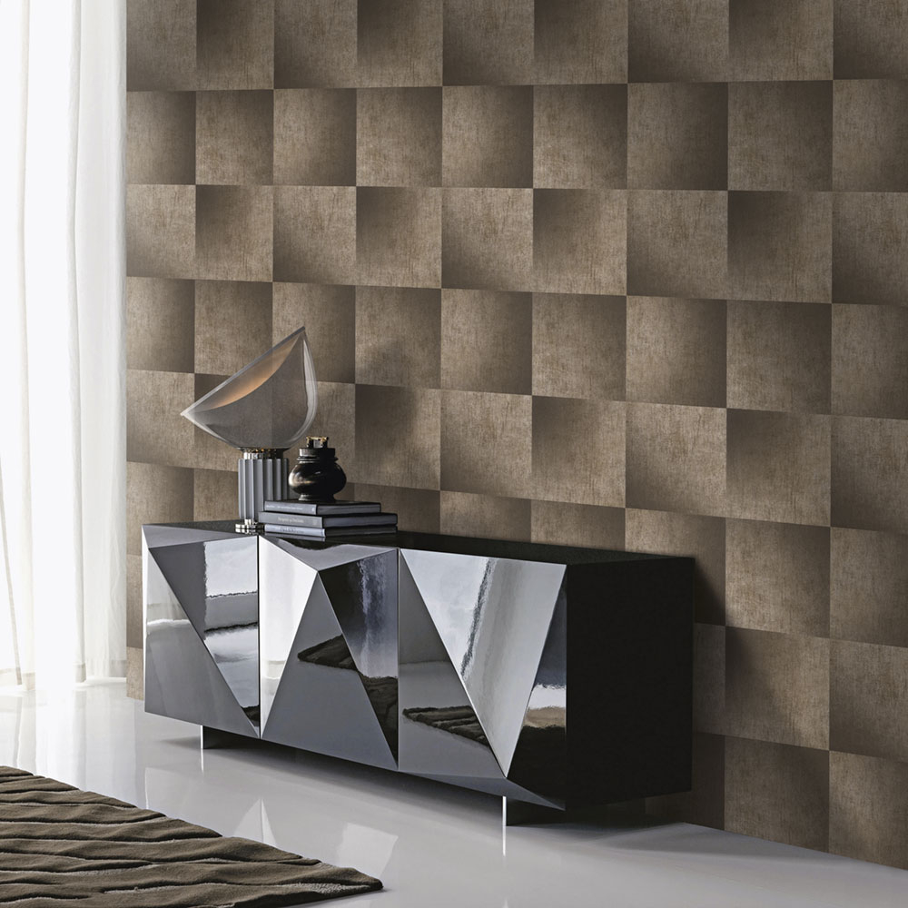Braune geometrische Vliestapete mit Stoffstruktur 45254, Feeling, Emiliana