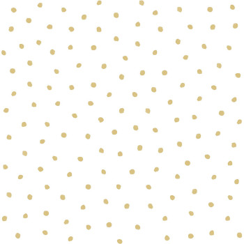 Vliestapete weiß, goldene Punkte.