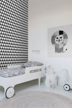 Vliestapete mit schwarzen und weißen Dreiecken 128845, Little Bandits, Black & White, Esta