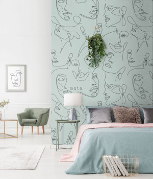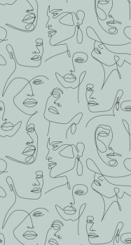 Fototapete mit Gesichtsmotiv. 3 Tapetenpaneele. Die Tapete hat ein durchgehendes Muster, für eine größere Breite einfach ein weiteres Stück kaufen.