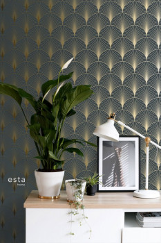 Dunkelblaue geometrische Vliestapete 139231, Art Deco, Esta