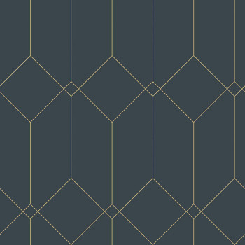 Dunkelblaue Tapete mit geometrischem Muster, goldene Linien.