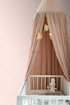 Rosa Vliestapete, geometrisches Bogenmuster 139217, Art Deco, Esta
