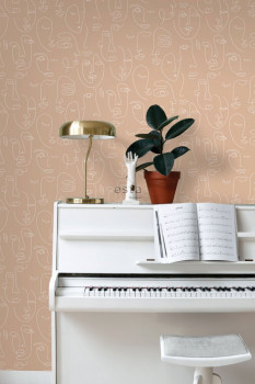 Beige grafische Vliestapete Gesichter 139214, Art Deco, Esta