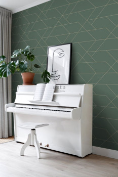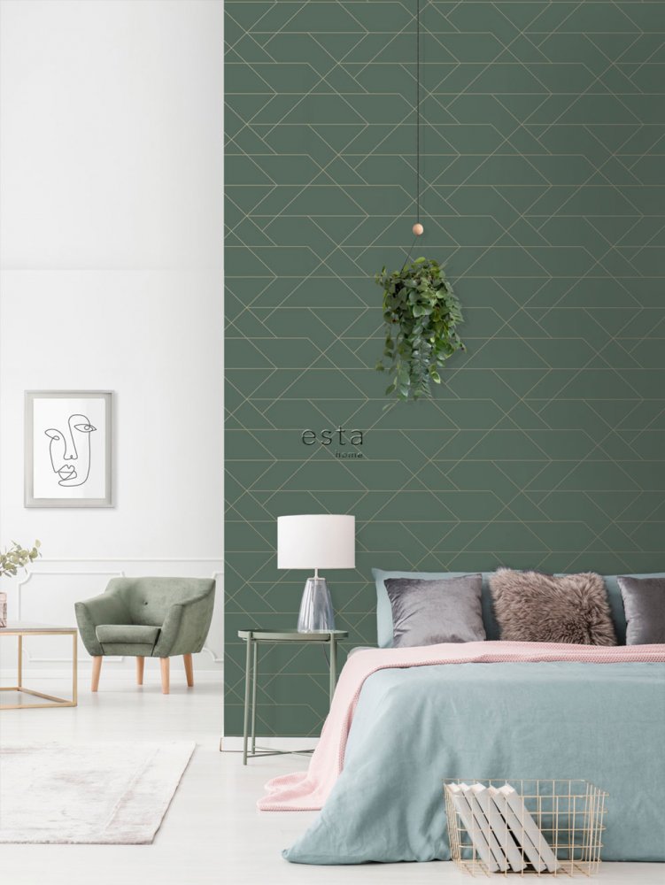 Vliestapete für die Wand grün mit goldenen Linien 139212, Art Deco, Esta