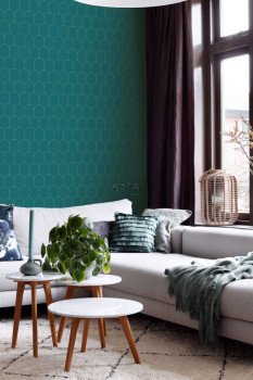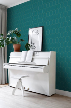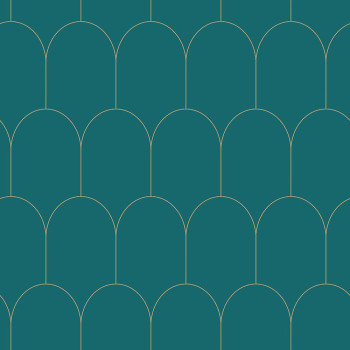 Türkis Vliestapete, geometrisches Bogenmuster 139205, Art Deco, Esta