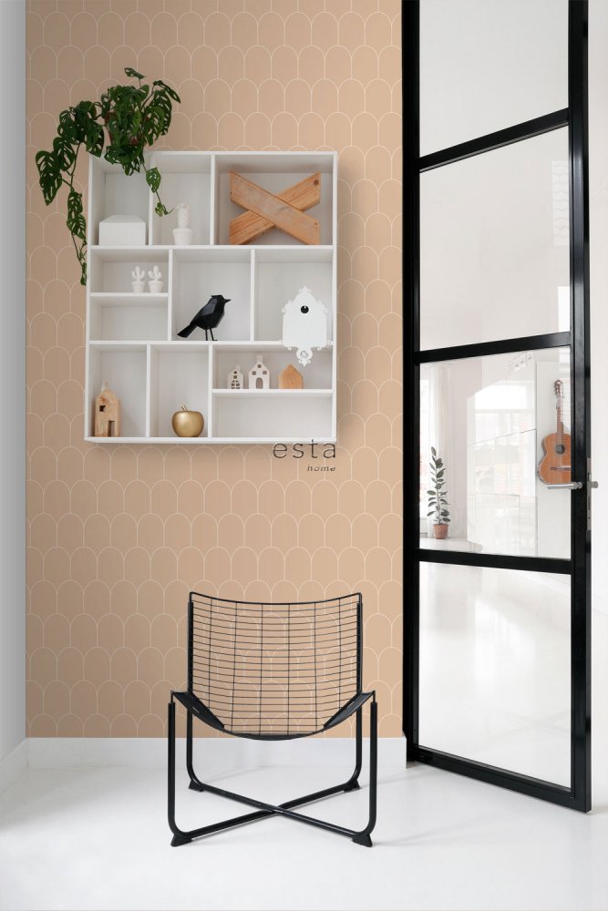 Beige Vliestapete, geometrisches Bogenmuster 139203, Art Deco, Esta