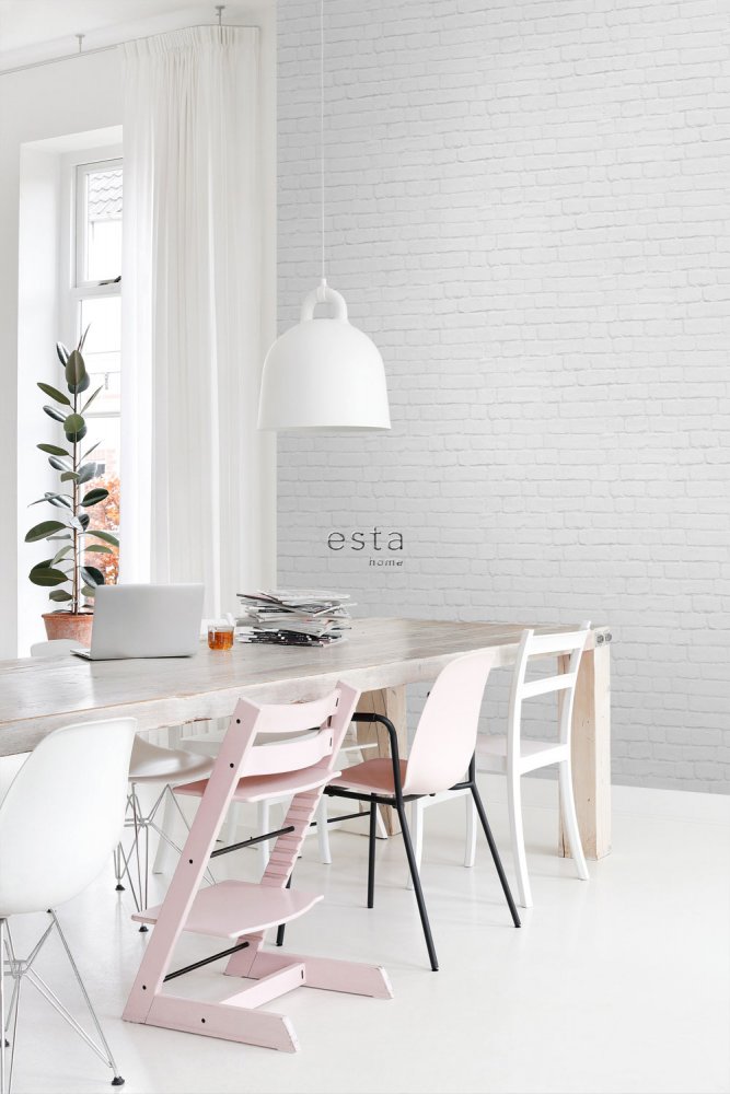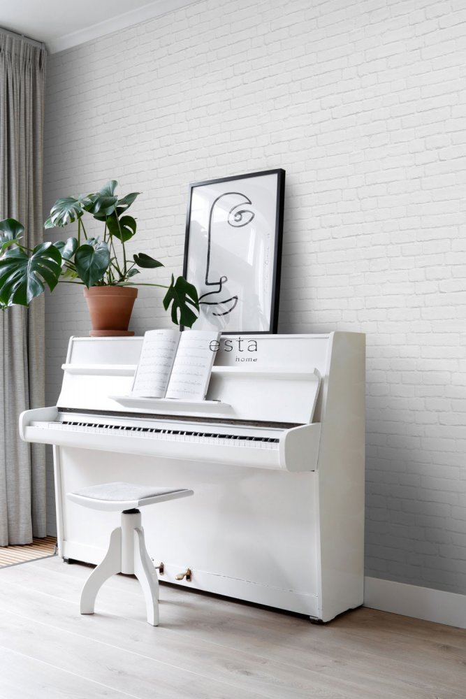Vlies grau-weiß Tapete Ziegel, Ziegelwand 139192, Art Deco, Esta