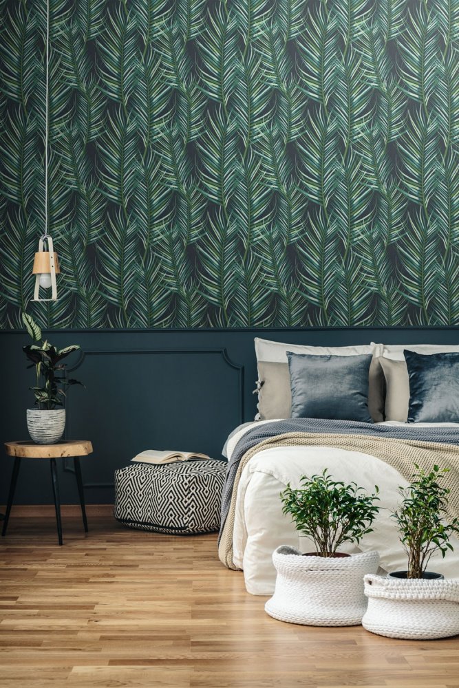 Non-woven wallpaper Palm leaves 100558, Palm Leaves, Paradise, Graham & Brown