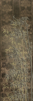 Luxus-Vlies-Dekorplatte mit Bambusmuster auf einem Hintergrund mit Wandmotiv mit Blumenmuster in Braun-Beige-Tönen. Dieses Panel kann mit den Panels Z6474 und Z6473 kombiniert werden.