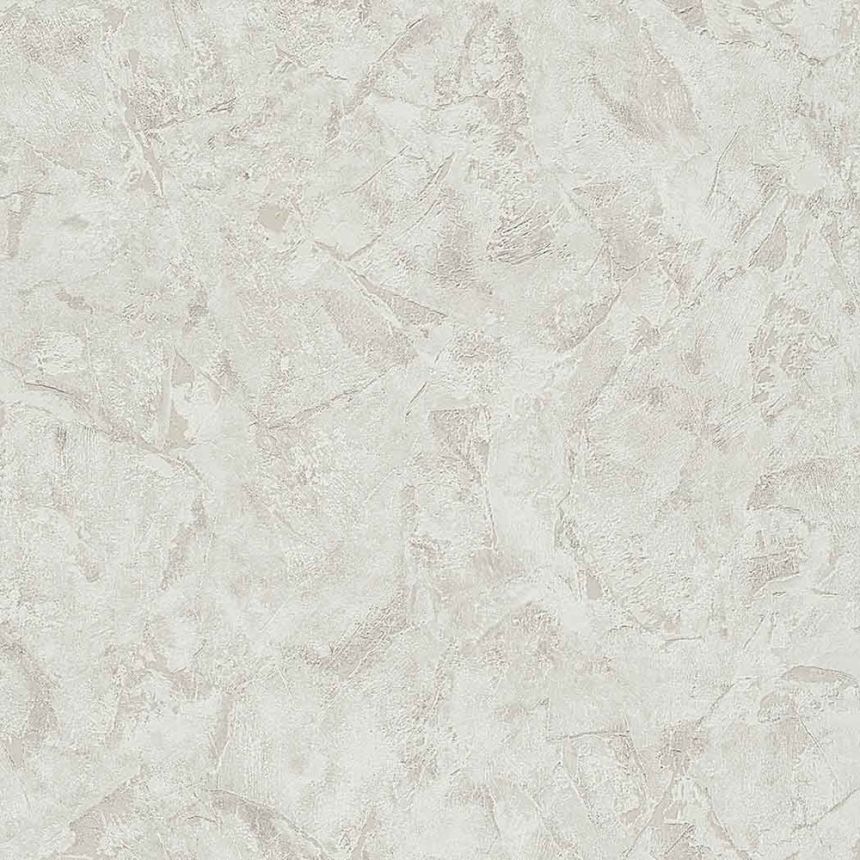 Vliestapete mit Vinyl-Oberfläche und reichem Ornamentmuster in weißentönen mit Perlenreflexion. Hintergrund ist ein cremefarbenes Stuckmuster.
