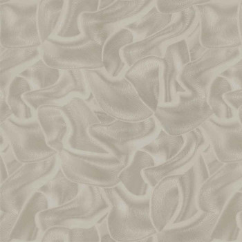 Vliestapete mit einer Vinyloberfläche mit der Wirkung eines welligen Stoffes. Die Tapete ist in Grau-Beige-Tönen gehalten.