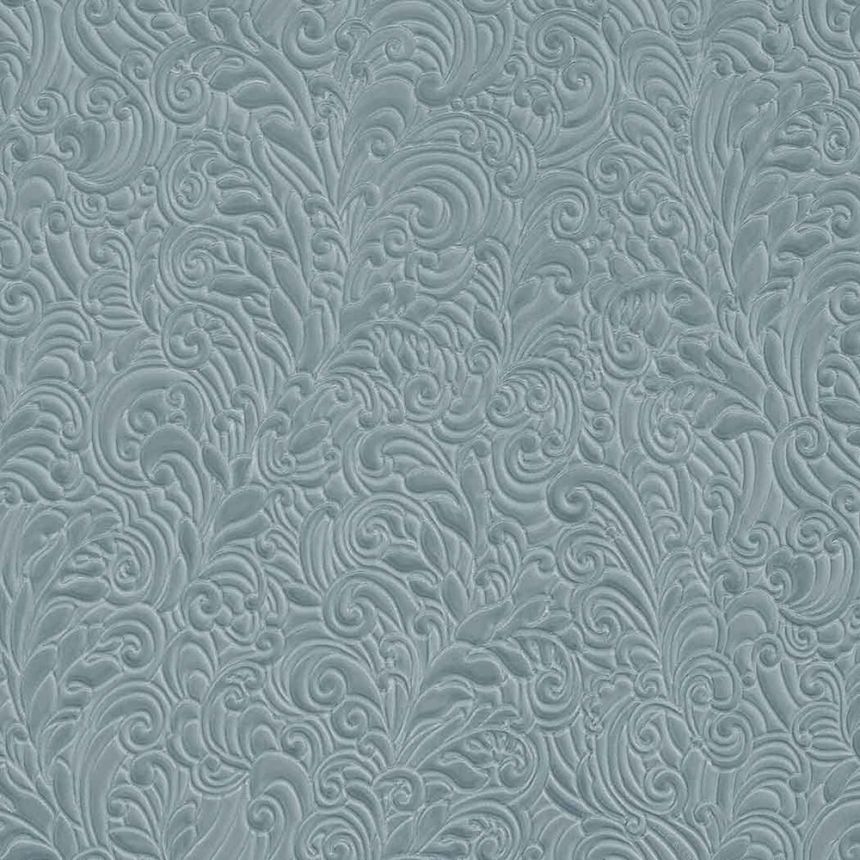Luxus Vliestapete mit Vinyloberfläche in Blaugrün-Tönen mit einem Muster aus zart geprägten Blättern.