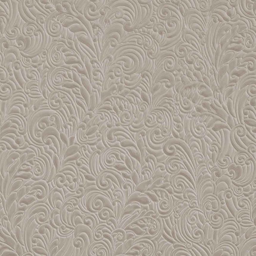 Luxus Vliestapete mit Vinyloberfläche in Brauntönen mit einem Muster aus zart geprägten Blättern.