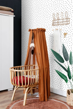 Vliestapete weiß, Punkte schwarz.