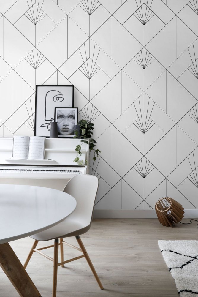 Vlies Fototapete, schwarz-weißes geometrisches Art-Deco-Muster 158934, 150x300cm, Black & White, Esta