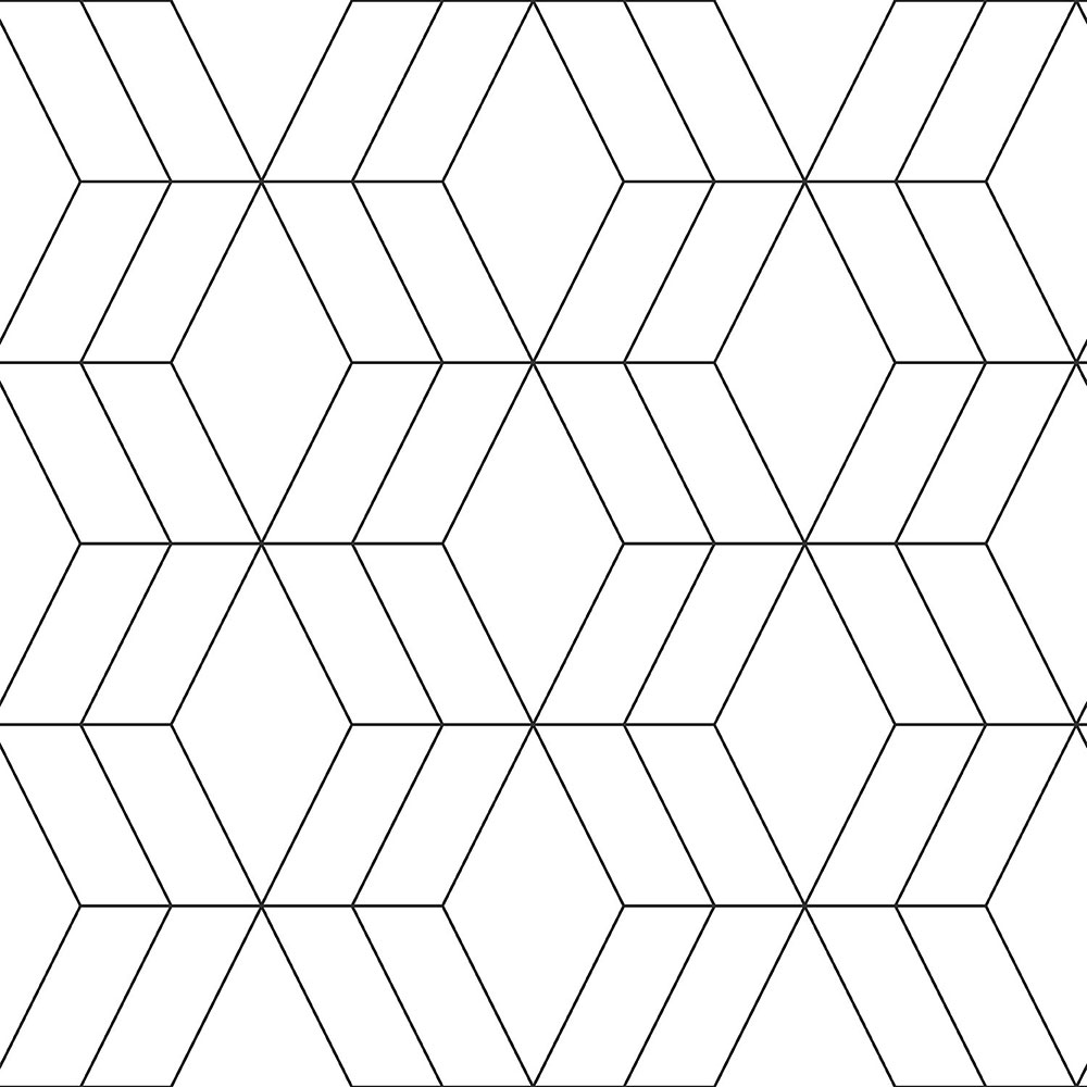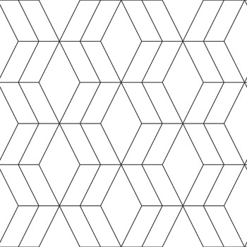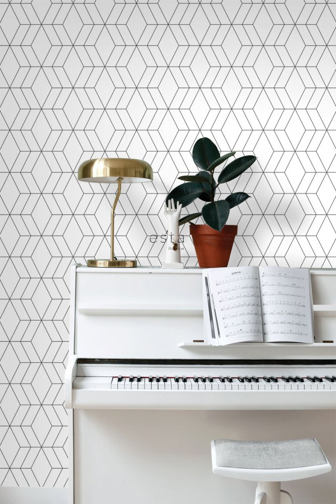 Weiße Vliestapete mit schwarzem geometrischem Muster.