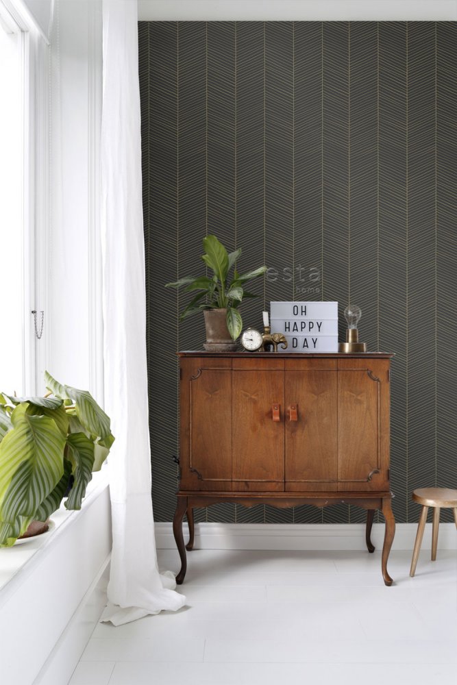 Vliestapete schwarz-gold, Streifen 139136, Black & White, Art Deco, Esta