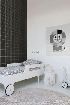 • Die Vliestapeten-Kollektion BLACK & WHITE Esta Home ist eine kontrastreiche Tapetenkollektion - schwarze Tapeten ergänzen weiße Tapeten, Tapeten mit Holzimitationsmuster stehen im Kontrast zu Tapeten mit Stein- oder Ziegelmustern in verschiedenen Farbtönen.
