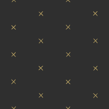 Vliestapete schwarz mit goldenen Kreuzen.