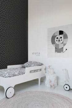 Schwarze Vliestapete mit goldenen Strichen 139128, Black & White, Esta