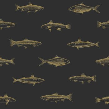 Schwarze Vliestapete mit Goldfischen 139124, Black & White, Esta